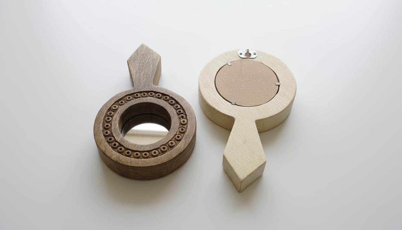 Handcarved Wooden Hand Mirror | Carved Accent Decor