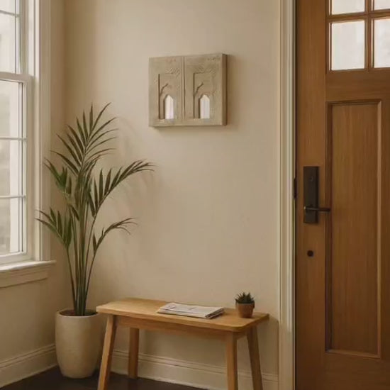 Bring timeless artistry into your home with this Handcrafted Twin Arch Wooden Mirror, made from premium reclaimed wood. Inspired by Indian architectural motifs, the twin arch frame adds charm and elegance to both modern and traditional interiors.