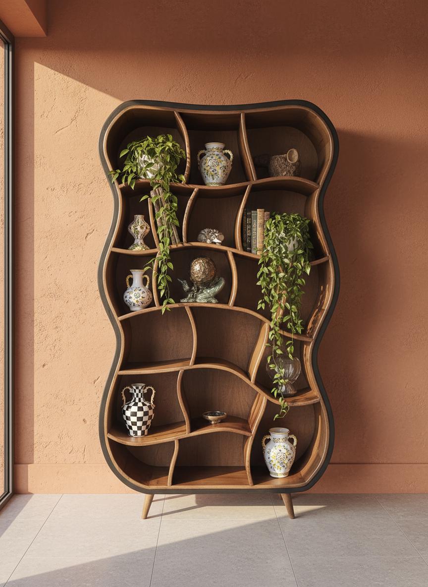 Handcrafted from 100% solid mango wood, this unique wave-shaped bookcase is more than storage — it’s a sculptural statement piece.